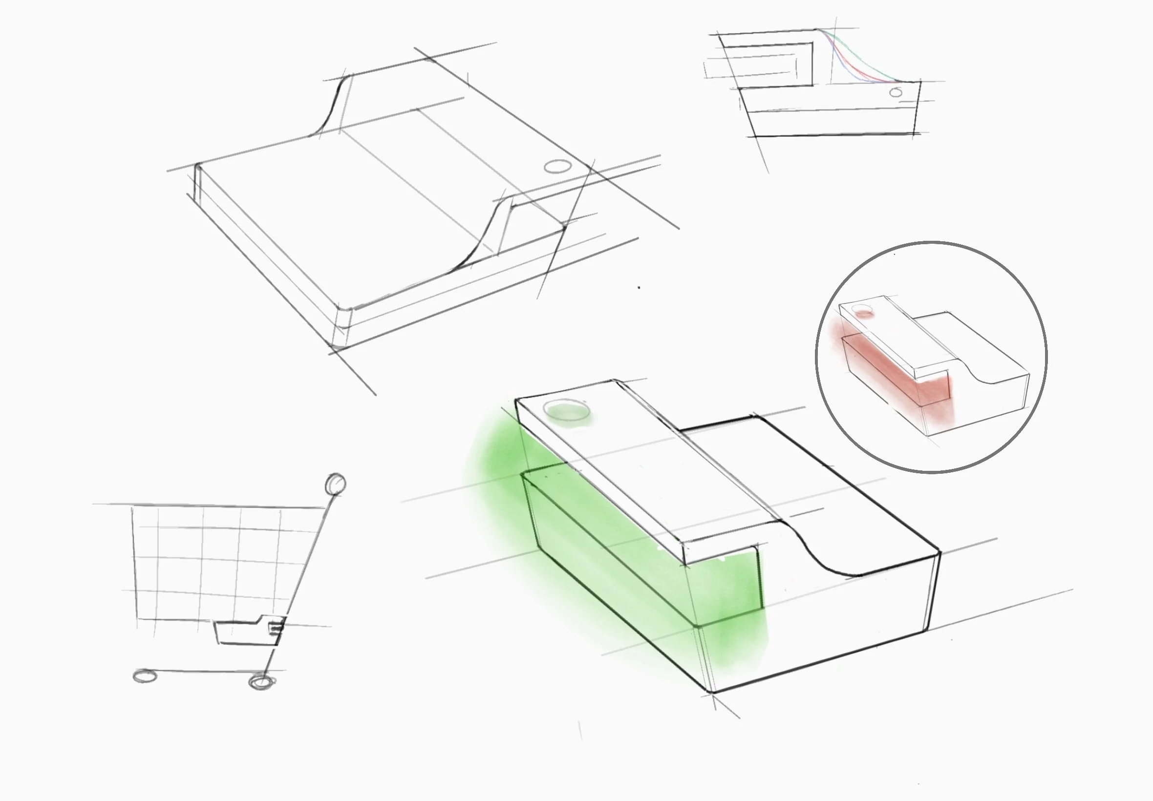 Slowly figuring out the form of the device and where I want the device to be on the cart